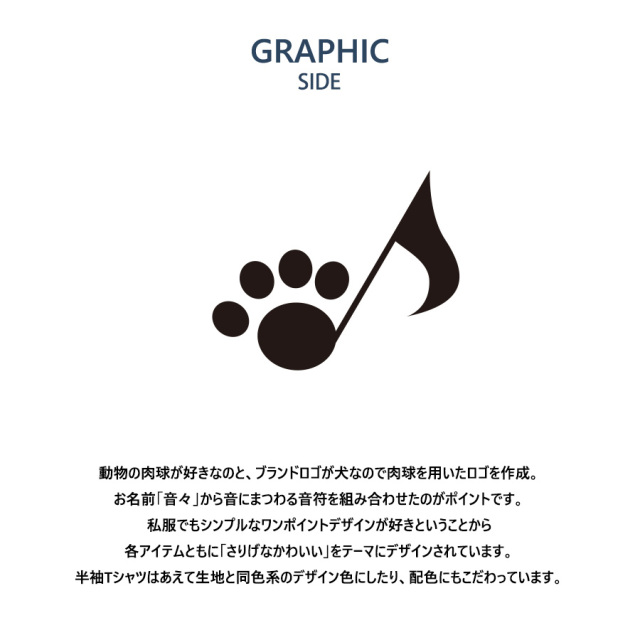 志田音々さんとのコラボ企画! 今回のコラボはZIPパーカー、半袖Tシャツ、スウェットパンツをリリース。 【デザイン】 動物の肉球が好きなのと、ブランドロゴが犬なので肉球を用いたロゴを作成。 お名前「音々」から音にまつわる音符を組み合わせたのがポイントです。 私服でもシンプルなワンポイントデザインが好きということから 各アイテムともに「さりげなかわいい」をテーマにデザインされています。 半袖Tシャツはあえて生地と同色系のデザイン色にしたり、配色にもこだわっています。 ここでしか手に入らない受注期間限定アイテムです!是非お買い求めください!!! ※商品の発送予定時期は【2月上旬頃~2月中旬頃順次発送予定】となります。 ※受注生産の為、生産状況により発送予定時期は変動する場合がございます。 ※高額注文の場合にはご注文後にお電話にてご連絡をさせていただく場合がございます。 お電話にてご連絡が取れない場合にはメールにてご連絡させていただき、 ご連絡日より3日以内にご返信をいただけない場合には不正注文の可能性があると判断し トラブル防止のためご注文をキャンセルとさせていただきます。 ※商品によっては撮影時にサンプルを使用しているため若干仕様が異なる場合がございます。 また、サイズ・カラーによっては仕様が異なる場合もございます。 ※手作業で縫製をしているため縫製の仕様により、 個体差が生じてしまいますので、1~2cm程度の誤差は予めご了承くださいませ。 ※洗濯機を使用した場合、お届け時のサイズより多少縮む場合がございます。 洗濯機を使用する場合は裏返してネットに入れることを推奨しております。 また、タンブラー乾燥機を使用しますとプリントが剥がれる恐れがありますので 避けていただきますようお願いいたします。 また、洗濯時の液温は40度以下とし、 塩素系および酸素系漂白剤の使用は避けていただきますようお願いいたします。 アイロンにつきましてもプリント及び刺繍部分は避け、 生地部分にアイロンをかける場合にはあて布をして110度(低温)にてお願いいたします。 ※また、受注生産とさせていただいておりますが、 各色・サイズ毎に生産数に限りがございます為、 生産数の上限に達しました場合在庫切れとなる場合がございます。 |
