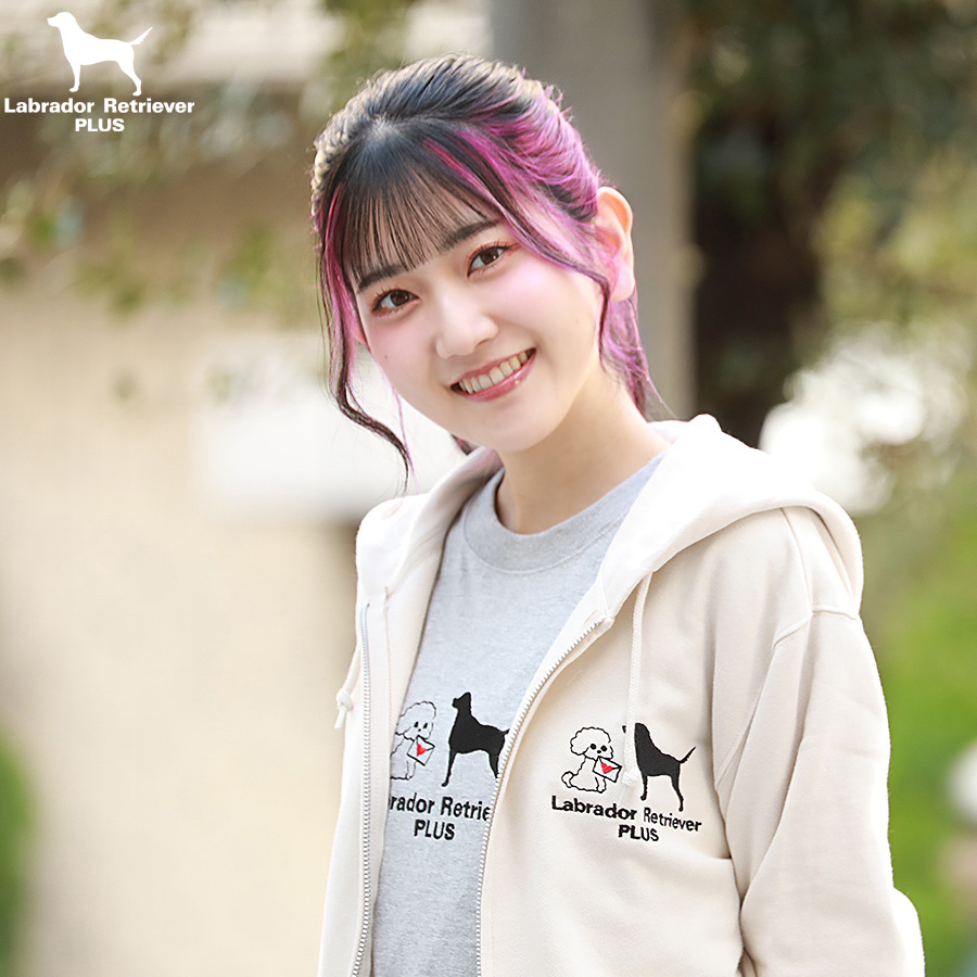 薮島朱音さんとのコラボ企画! 今回のコラボは長袖Tシャツ、ZIPパーカー、スウェットパンツ、キャップをリリース。 【デザイン】 2年前に飼い始めた無条件に愛してくれて、よい影響になり ファンの方にも馴染みのあるトイプードルの「ふうさん」をテーマにデザイン。 ロゴは、普段気持ちを伝えるのに手紙を書いており、 ご自身の大切にしている「手紙」を「ふうさん」が 愛を届けているようなデザインがポイントです。 長袖Tシャツの背面には、食いしん坊の「ふうさん」と 薮島朱音さんが大好きな「パン」を組み合わせています。 ここでしか手に入らない受注期間限定アイテムです!是非お買い求めください!!!